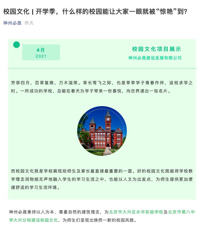 校園文化 | 什么樣的校園能讓大家一眼就被“驚 時(shí)間 :2021-04-03 10:37點(diǎn)擊 :1960 上一篇:神州必晟喜迎牛年!2020感恩相伴,2021再創(chuàng)佳績(jī)! 下一篇:神州永皓高爾夫球會(huì)月例賽,盡享自然之美與揮