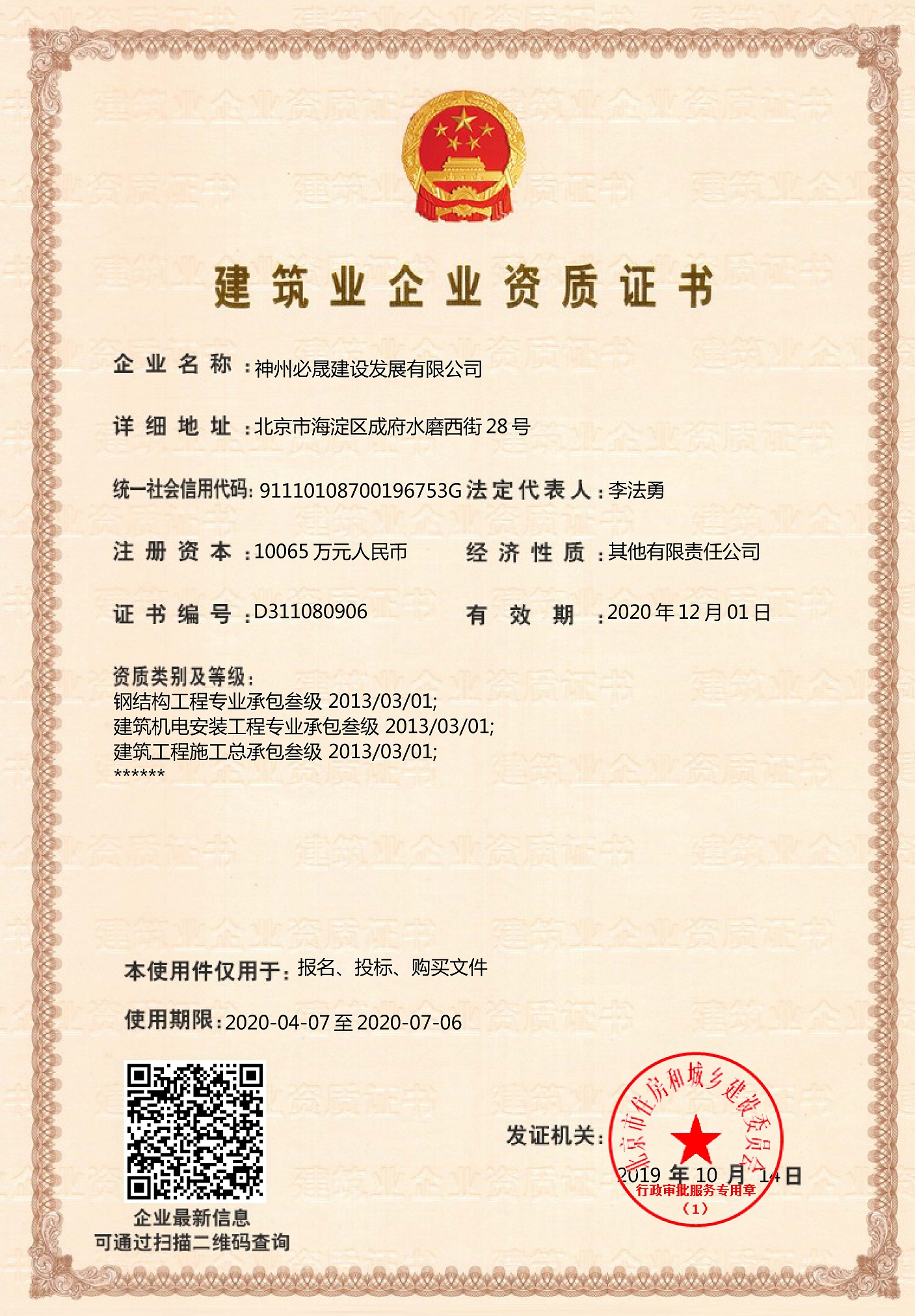 建筑業(yè)企業(yè)資質證書